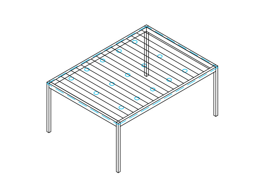 Enhance your outdoor space with tailored lighting solutions from SKYVI. Choose from integrated lighting in slats, beams, or vertical posts to create the perfect blend of style and functionality. Discover how SKYVI lighting can transform your pergola into a stunning and functional centerpiece, day or night.